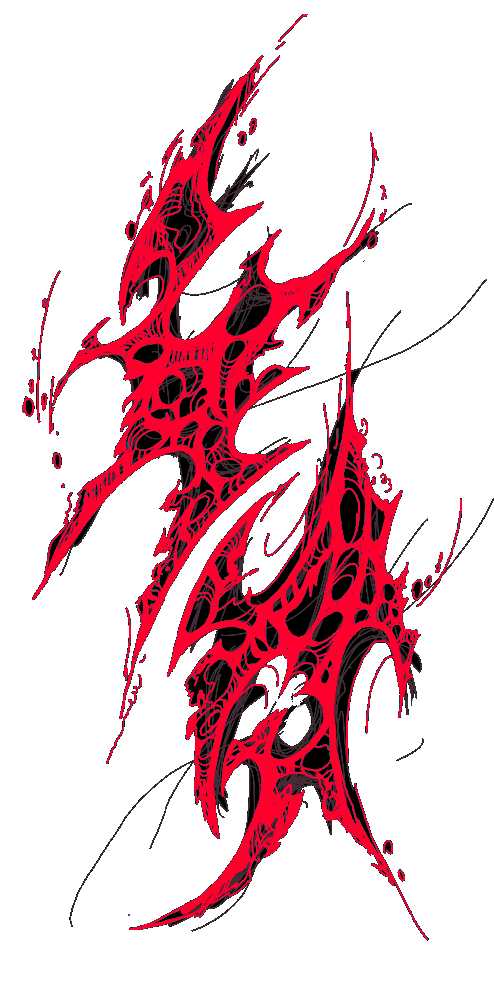 One of a kind designs that fuse neotribal art style with alien organic shapes.